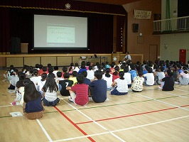 6年生は、薬物乱用防止教室に参加しました。講師の方に来ていただいて、違法薬物の乱用が拡大していること、若年層による薬物乱用の広がりが深刻な問題になっていることについて話をしていただきました。また、薬物を使用した場合、どのような症状が出るか知り、薬物の怖さも学びました。