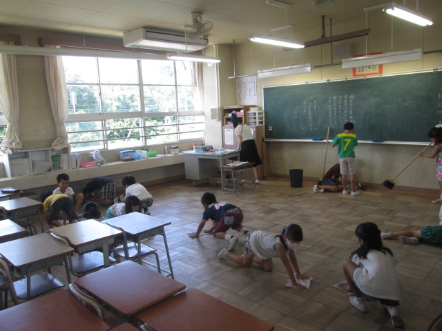 いつも以上に、ロッカーをどけて掃除をするなど、協力して隅々まで掃除をしました。全校児童のみなさん、ご苦労様でした。