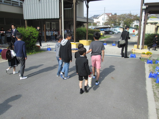 受付の後は、お家の人と離れて6年生のお兄さん・お姉さんと一緒に教室へ。