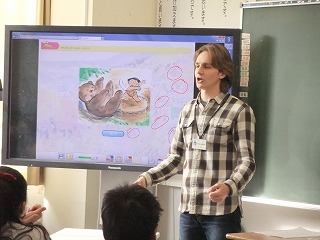 はじめに、画像を見ながら、子どもたちと会話をして自己紹介をして頂きました。初めて知った事ばかりで感嘆の声が上がっていました。そして、「英語で乗り物を言ってみよう!」ということで、乗り物の単語の練習をしたり、ゲームをしたりして英語に楽しく慣れ親しむことができました。