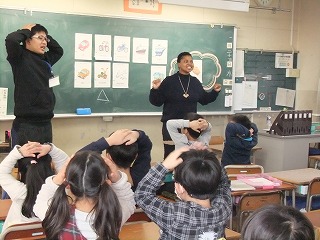 まずは5・6年生を教えているエバン先生の「日本の学校給食について」です。