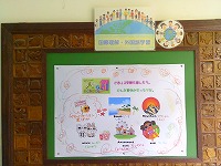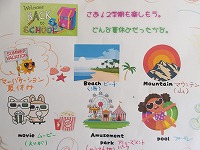 「どんな夏休みだったかな?」というテーマで国際理解教育の掲示を行っています。夏休みに行った思い出の場所について英語で表記して、児童の興味関心を引くねらいの掲示物です。子どもたちも足を止めて、自分が行った場所を指し示したり、単語を口ずさんだりしている様子が見られました。今学期も様々な掲示で児童の興味付けを行っていきます。