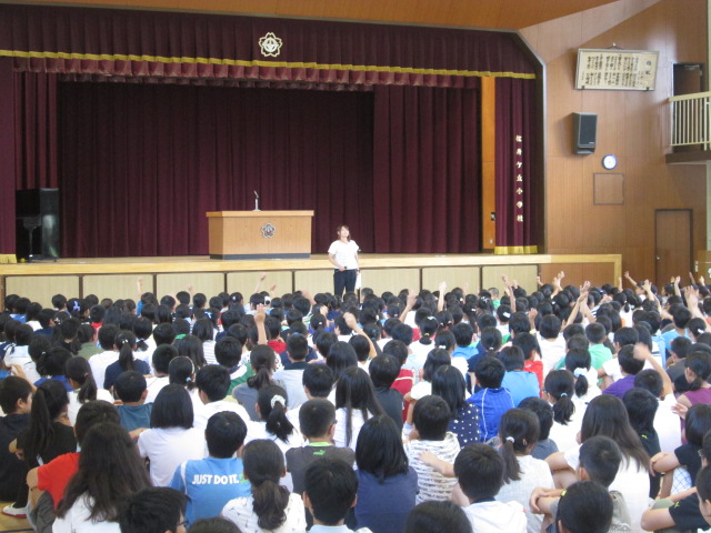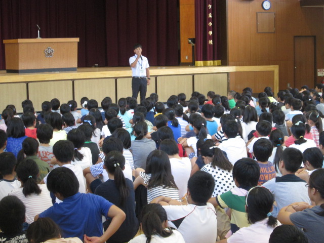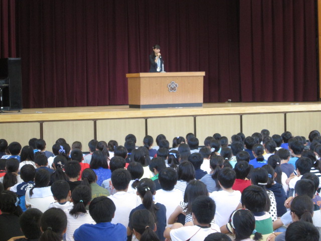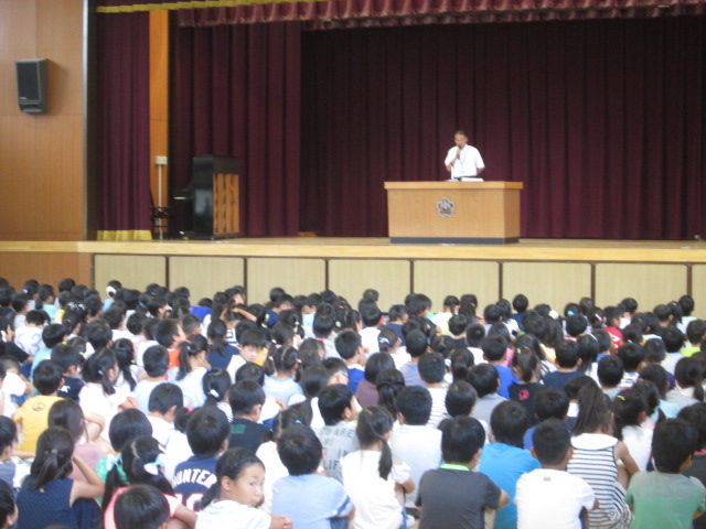 校長先生からは、「あさごはん」、「あいさつ」、「あんぜん」、3つの「あ」についてお話がありました。夏休みも毎日意識して生活するようにと、校長先生から全校児童に宿題が出されました。