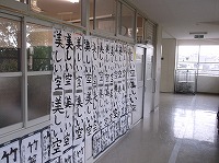 1月18日から始まる書き初め展に合わせて、各学級において書き初めの掲示をおこなっています。北校舎の4年生と6年生が入っている校舎では、教室の廊下側に子ども達が書いた書き初めを掲示して、書き初め展の準備も万端になりました。保護者の皆様、参観お待ちしています。