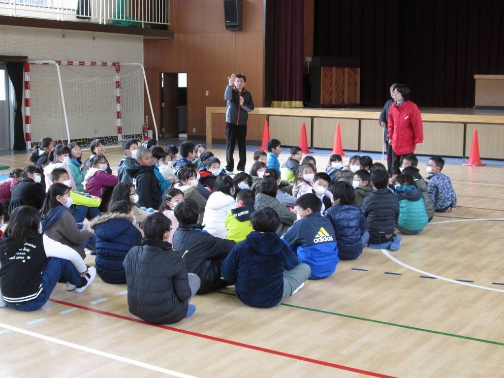 お話を聞いた後は、体育館でアイマスク体験を行いました。