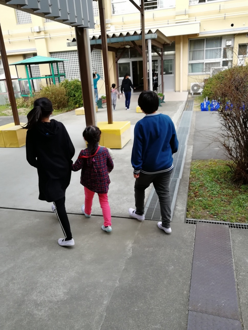 受付を済ませると園児は5年生のお兄さん・お姉さんに手をつないでもらって、校舎探検に行きました。掃除の時間でしたが、教室や保健室など、幼稚園や保育園よりも広い校舎を探検しました。4月から通う学校のことが少しはわかったかな。