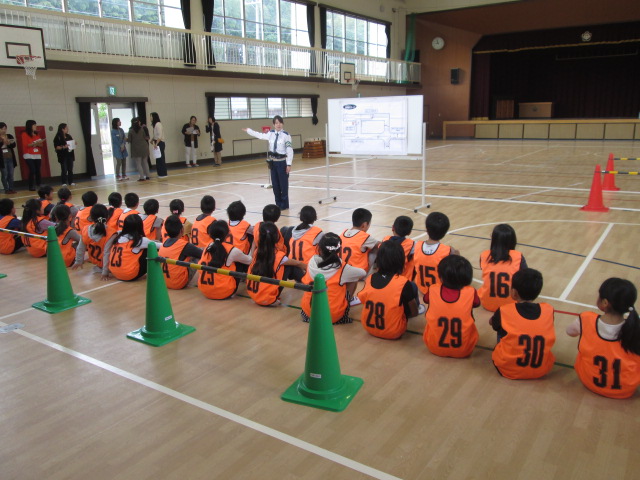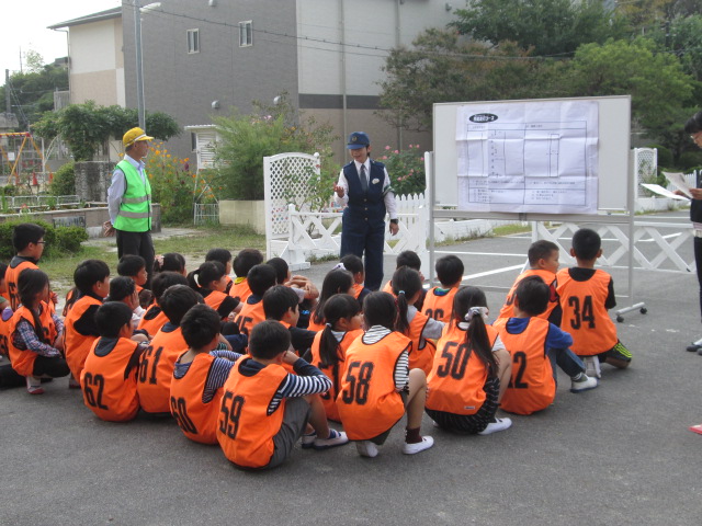 田辺警察交通課の方々をお招きし、4年生で交通教室を行いました。