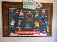 クリスマスまでもう少しです。北校舎の掲示板にも外国語学習の啓発資料として、クリスマスに関する英語の表記を行っています。子どもたちにとって掲示資料は、外国語に対する興味付けを行う良い機会となっています。