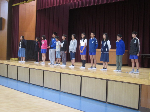 11月8日(火)の児童朝礼で、後期委員会委員長の紹介がありました。各委員長が自分の委員会の活動目標や活動内容などを発表しました。委員長は、はっきりと大きな声で発表し、全校児童は静かに前を見て聞いていました。委員会からのお願いなどもあり、全校児童で守っていってほしいと思います。