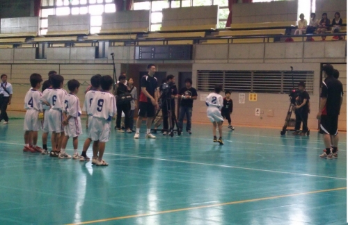 先日の5月23日(土曜日)、田辺中央体育館において、NHKテレビスポーツ教室「今日から始めるハンドボール(初級編)」の収録が行われ、本校ハンドボールクラブ5年生男子が出演しました。日本協会の田中茂さんを講師にお招きしてハンドボールの基礎を教えていただきました。また、トレーニングパートナーとして来ておられた、元日本代表の猪妻正活選手、現日本代表の成田幸平選手のプレーを間近で見て、子どもたちは、その迫力に歓声を上げていました。とても貴重な体験ができてよかったです。