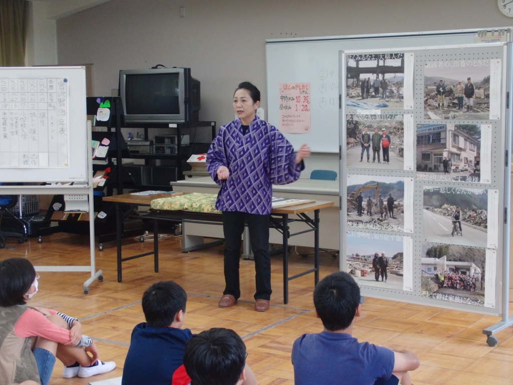 本日は六嶋美由子さんを講師として、6年生が本の読み聞かせや詩の朗読、宮沢賢治の生き方について学びました。