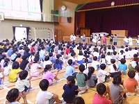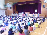 7月4日(火)に児童朝礼を行いました。この日は、来週木曜日に予定している児童会行事「松学祭」で行われる、各クラスの出し物の紹介がありました。「宝探し」や「ボーリング」など、3~6年生の各学級で趣向を凝らした遊びを計画している様子がよく伝わりました。松学祭当日が楽しみです。