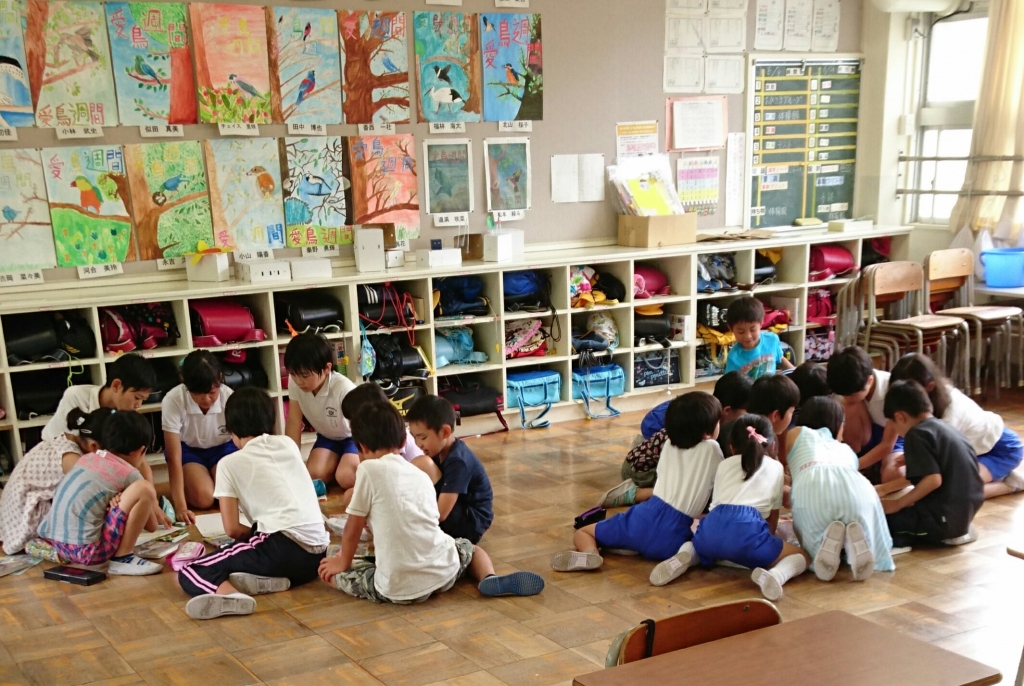 6月8日(水)の2時間目に、縦割り活動をしました。おひさまグループに分かれ、5・6年生が考えたオリジルナルの旗を作りました。6年生が下書きをし、1~5年生が色を塗りました。みんな協力し合って取り組みました。