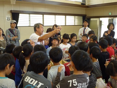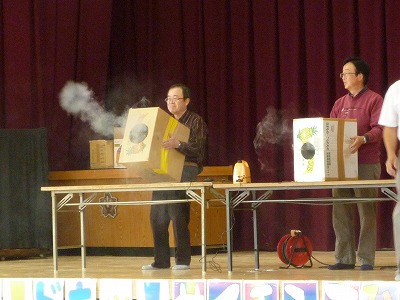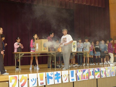 4年生は、PTA学級活動として、「どこでも行くDAY科学ショー」の4人の先生方に来ていただき、いろいろな科学の実験を体験しました。
