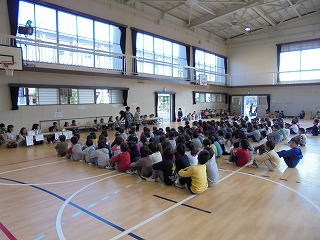 2年生のあいさつで、おもちゃまつりがはじまりました。
