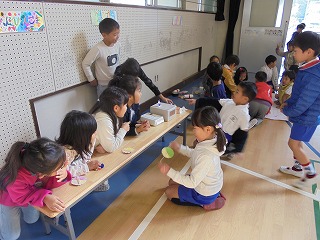 1年生に楽しく遊んでもらおう!という時間です。