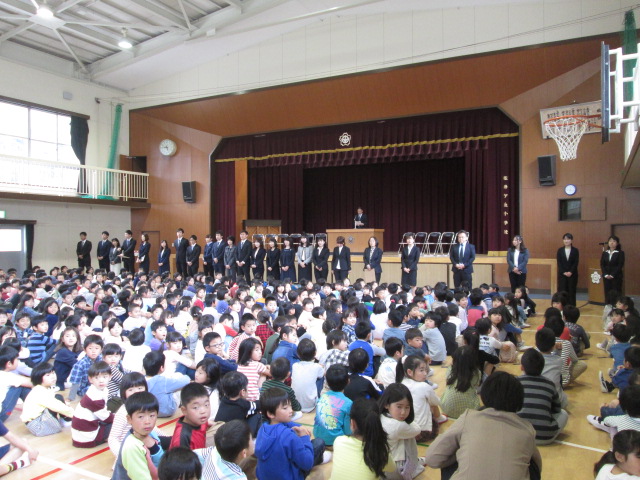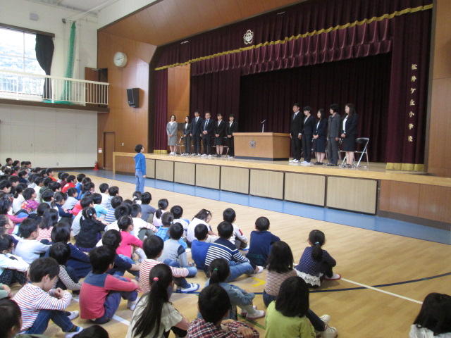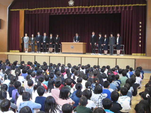 着任式では、新たに松井ケ丘小学校に来られた11名の先生方をお迎えしました。これから、よろしくお願いします。