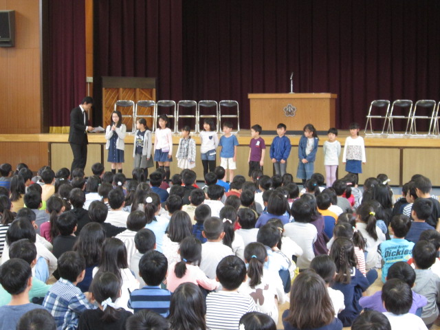 その後に行われた始業式では、校長先生からの励ましの言葉があり、さらに、担任発表が行われ、子どもたちは新たなスタートに気を引き締めている表情が多く見られました。また、転入生も11名来て、新しい友達も増えました。
