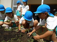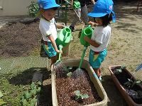 5歳児の子どもたちは、夏野菜に引き続いて、ブロッコリーとほうれん草を植えることにしました。夏野菜を一生懸命世話をしたくさん収穫できた経験から、今回の栽培でも張り切る様子が見られました。今後も、大切にお世話をしていきたいと思います。