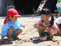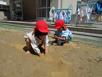 ここ数日雨が続きましたが、ようやく晴れ、戸外遊びを楽しみました。