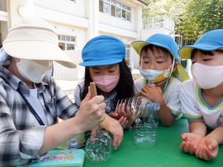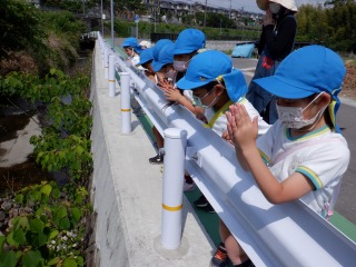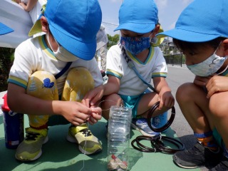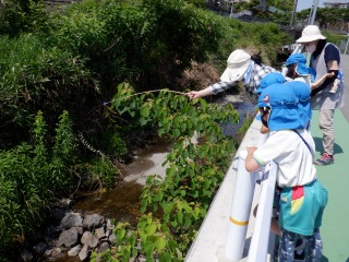 さあ、ひまわり組さんは、ざりがにを捕まえられるでしょうか。