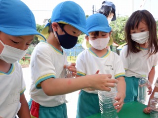 幼稚園に帰ってから、ざりがにを獲る仕掛けを作ることにしました。