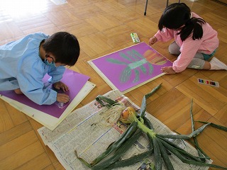 それから、お部屋ではよ~く観察して玉ねぎの絵を描きました。