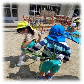 みんな、おしりにねぎをさして元気いっぱい園庭を走りまわっていました。