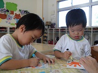 子ども達が心をこめて祖父母の皆様に葉書を書きました。