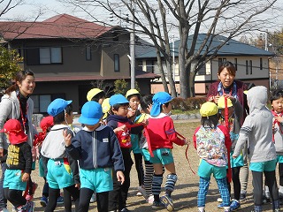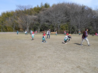 公園では3歳児、4歳児5歳児、みんなで鬼ごっこやしっぽとりゲームをしました。