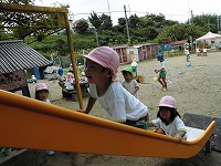 夏休み前に植えたひまわりも、優しく子ども達を迎えています。