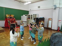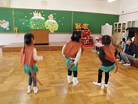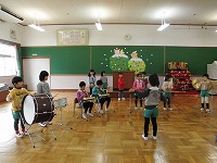 楽器を鳴らしたりして発表会ごっこを楽しんでいます。今までの経験を生かして自分たちで演出(!)を加え楽しく遊んでいる子ども達の姿も見られています。