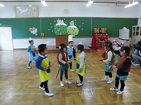 年中児は、色鬼や中当てドッジボールを楽しんだり、大きい組さんのドッジボールに入れてもらったりしています。色鬼で鬼同士が集まって何色にするか相談している姿は、まるで大きい組さんの様です。