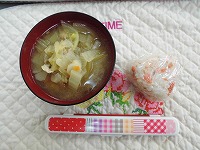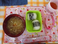 今日は、お家の方にも好評な “おにぎりデー” でした。寒い季節にぴったりの “野菜たっぷり具だくさん豚汁” をいただきました。幼稚園で収穫した大根や小カブも入れました。(豚肉、大根、白菜、玉葱、人参入り)