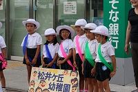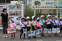 今朝、松井山手駅においておはようキャンペーンをしました。年長組21人が行き交う方達におはようのご挨拶をしました。