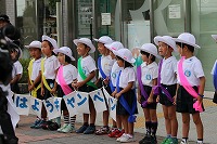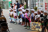 子どもたちは初めて出会う人たちに少しはにかんだ様子でした。あいさつをすると、驚いた様子で早足になる人、無反応に行きすぎる人、立ち止まってあいさつを返してくれる人、手を振ってくれる人等様々でした。