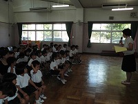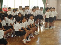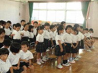 一人一人、担任の先生から名前を呼ばれ、「はい!」と元気に返事をしたり、先生たちから夏休みの約束を聞いたり、1学期頑張って元気に登園できたことを、ほめてもらったりしました。