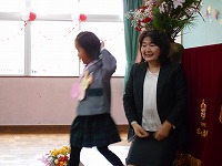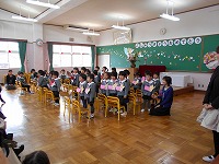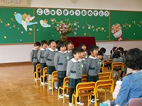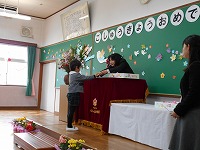園長先生とお辞儀をしていただました。修了式の様子をみていただけなのに、大きい組のように返事をしたり、お辞儀をする姿に子どもたちの成長を感じました。
