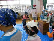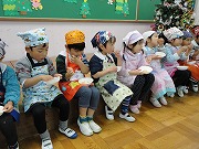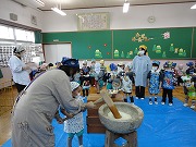 あいにくの雨でしたがPTAの役員さんをはじめ、小学校の校長先生、教頭先生、餅つきには欠かせない指導教諭の先生や力持ち(?)の男性教諭、すみれ組の生徒さんと担任の先生達も来てくださり、とても賑やかなお餅つきになりました。おかげでやわらかくつきあがったお餅をきなこ餅やすまし雑煮にして頂きました。とっても美味しかったので何回も何回もおかわりして、おなかいっぱいになりました。年末の楽しい行事の1つが無事に終わりました。ご協力頂きました皆様に御礼申し上げます。ありがとうございました。