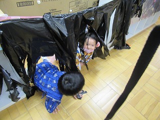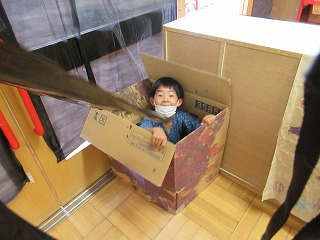 次の日には、お家にある段ボールを抱えて登園してきた子どもたち。