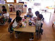 恒例となりましたおにぎりデーです。家ではなかなか食べない野菜も頂いてくれます。中には、野菜を少なめにしているお子達もいます。
