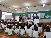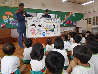 幼稚園に7名の消防士さんが来てくださり、「防火教室」を行いました。