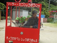 天候が心配されましたがみんなの思いが通じたのか、全クラスの園児がミニ消防車に