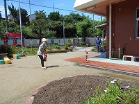 先生たちも、万一に備えて消火の練習。