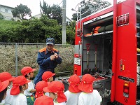 憧れの格好いい消防士さんの話を食い入るように聞いていた子どもたち。