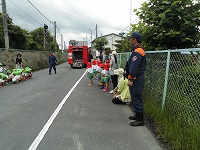 また、消防車に積んでいるホースもどれくらい伸びるかなあと、実際にビューン!!とホースが伸びる様子をみせていただき、いろいろなことを知ることができました。
