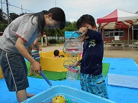 金魚すくいやペットボトルのシャワーなどの水遊びコーナーも