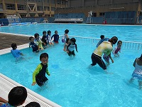 プールでは、足から水をかけた後、プールの中を、歩いたり走ったりして少しづつ水に慣れました。