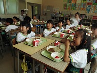 「カレーライス、大好き」と大喜びで食べている子ども達。