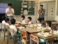ごちそうさまの後の片付けには、配膳してくれた6年生が再び来て、片付け方を優しく教えてくれました。